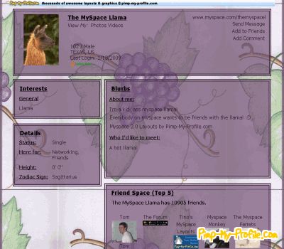 | Grapes Friendster Layouts | <<Prev Next>>  | Designer: catlover4205 Tools · Preview · Customize · Bookmark Current Rating: