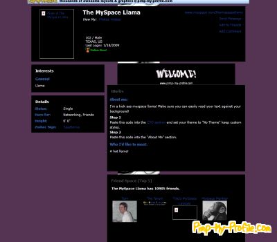 Pimp-My-Profile.com is in no way endorsed by or affiliated with myspace, hi5, blogger, friendster, twitter or any other site.