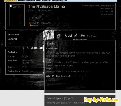 Pimp-My-Profile.com is in no way endorsed by or affiliated with myspace, hi5, blogger, friendster, twitter or any other site.