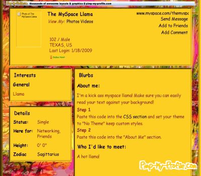 Pimp-My-Profile.com is in no way endorsed by or affiliated with myspace, hi5, blogger, friendster, twitter or any other site.