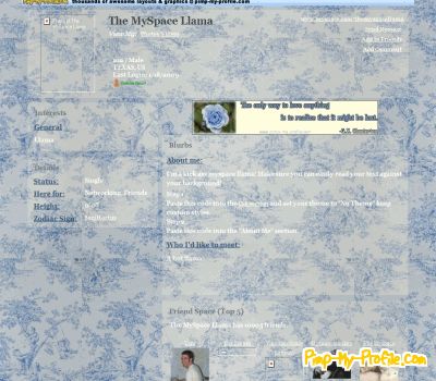 Pimp-My-Profile.com is in no way endorsed by or affiliated with myspace, hi5, blogger, friendster, twitter or any other site.