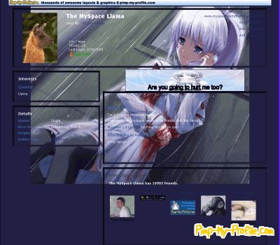 Pimp-My-Profile.com is in no way endorsed by or affiliated with myspace, hi5, blogger, friendster, twitter or any other site.